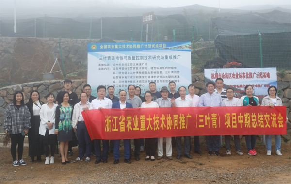 10月12日,浙江省农业技术推广中心在杭州市余杭区百丈镇召开了浙江省农业重大技术协同推广(三叶青)项目中期总结交流会,浙江省农业技术推广中心副主任舒伟军、厅中药材首席专家何伯伟、浙江理工大学生命科学与医药学院院长梁宗锁、浙江大学研究员毛碧增、浙江省农科院研究员王汉荣、杭州余杭区农业技术推广中心高级农艺师黄锡志、温岭市农业农村和水利局副总农艺师林燚、浙江胡庆余堂本草药物有限公司总经理孙穗、杭州三叶青农业科技有限公司董事长许鑫瀚、浙江豆豆宝中药研究有限公司董事长张军辉等领导专家和项目组人员参加会议。